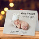 Festa de 4 fotos de Natal, época de Natal dobrada cartão de anúncio de nascimento. A fotografia do seu recém-nascido preenche a frente do cartão com "Feliz e Brilho e para cima a noite toda!" escrito em uma mistura de tipografia elegante e um roteiro para o na moda (este texto pode ser movido na ferramenta design para se adequar à sua fotografia). Adicione seu nome e estatísticas de natalidade. No dentro, adicione 3 fotos adicionais, uma saudação sazonal a familiares e amigos e seus nomes.