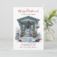 Esta rústica aquarela Feliz Natal, nova casa para o cartão de anúncio de feriados com uma porta da frente festivamente decorada com arbustos e árvores de pinheiro, uma coroa, e arcos de feriados vermelhos seria perfeito para enviar aos seus amigos e família agora que você se mudou para uma nova casa. O sentimento é personalizável. Basta para que todos que conheces e amamos tenham o teu novo endereço. Ficarão tão animados com a sua grande jogada!