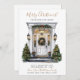 Esta nova casa de Natal Feliz para o cartão de anúncio de feriados com uma porta da frente festivamente decorada com arbustos e árvores de pinheiro, uma coroa, e arcos de feriados vermelhos seria perfeito para enviar aos seus amigos e família agora que você se mudou para uma nova casa. O sentimento é personalizável. Basta para que todos que conheces e amamos tenham o teu novo endereço. Ficarão tão animados com a sua grande jogada!