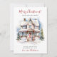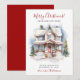 Esta nova casa de Natal Feliz para o cartão de anúncio de feriados com uma casa festivamente decorada com neve, pinheiros, uma coroa, arcos vermelhos e árvores seria perfeito para enviar aos seus amigos e família agora que você se mudou para uma nova casa. O sentimento é personalizável. Basta para que todos que conheces e amamos tenham o teu novo endereço. Ficarão tão animados com a sua grande jogada!