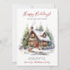 Esta rusticada coloração aquática Feliz Feriados nova casa para o cartão de anúncio de feriados com uma cabana de madeira festivamente decorada com arbustos de pínus e árvores seria perfeito para enviar para seus amigos e família agora que você se mudou para uma nova casa. O sentimento é personalizável. Basta para que todos que conheces e amamos tenham o teu novo endereço. Ficarão tão animados com a sua grande jogada!