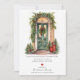 Este anúncio comovente mostra o ditado "Felizes feriados da nossa nova casa" com uma linda porta verde de aquarela, enfeitada com pinheiros. O anúncio é perfeito para enviar aos amigos e à família durante a temporada de férias para informá-los sobre seu novo endereço. A frente do anúncio apresenta o ditado e a porta frontal verde de cor d'água, e inclui seu novo endereço e informações de contato. O design geral é festivo e convidativo, e o anúncio certamente coloca um sorriso nos rostos de seus entes queridos.