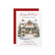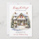 Esta melancolia Feliz Feriado nova casa para o cartão de anúncio de feriados com uma casa festivamente decorada com ramos de pinheiro, uma coroa, arcos vermelhos e árvores seria perfeito para enviar aos seus amigos e família agora que você se mudou para uma nova casa. O sentimento é personalizável. Basta para que todos que conheces e amamos tenham o teu novo endereço. Ficarão tão animados com a sua grande jogada!