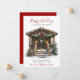 Esta rustica cor d'água Feliz Feriados é nova casa para o cartão de anúncio de feriados com uma porta frontal de madeira decorada com arbustos e árvores de pinheiro, uma coroa, e arcos vermelhos de feriado seriam perfeitos para enviar aos seus amigos e familiares agora que você se mudou para uma nova casa. O sentimento é personalizável. Basta para que todos que conheces e amamos tenham o teu novo endereço. Ficarão tão animados com a sua grande jogada!