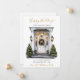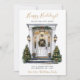 Esta melancolia Feliz Feriado nova casa para o cartão de anúncio de feriados com uma porta da frente festivamente decorada com arbustos e árvores de pínus, uma coroa, e arcos de feriados vermelhos seriam perfeitos para enviar aos seus amigos e família agora que você se mudou para uma nova casa. O sentimento é personalizável. Basta para que todos que conheces e amamos tenham o teu novo endereço. Ficarão tão animados com a sua grande jogada!