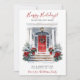Esta aquarela Feliz Feriados, nova casa para o cartão de anúncio de feriados com uma porta vermelha festivamente decorada com árvores, uma coroa e arcos de feriados vermelhos seria perfeito para enviar para seus amigos e família agora que você se mudou para uma nova casa. O sentimento é personalizável. Basta para que todos que conheces e amamos tenham o teu novo endereço. Ficarão tão animados com a sua grande jogada!