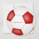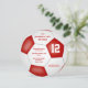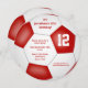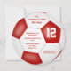 Este convite de aniversário de futebol esportivo apresenta um gráfico de bola de futebol, com os painéis tipicamente pretos da bola coloridos a vermelho, sobre os quais você pode personalizar todos os detalhes da festa - por katz_d_zynes