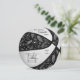 Este belo convite para comemoração de basquete apresenta a imagem realista de uma bola de basquete estilizada que recolheu painéis alternados de preto e branco - um padrão de rabiscos de paisagens, flores e penas em cobrir brancos os painéis negros do basquete - personalize com seus detalhes - por katz_d_zynes