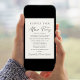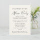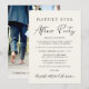 Convite de casamento simples creme para elopement ou pequeno casamento e recepção de casamento ou festa de celebração. A frente apresenta "Festa Feliz para Sempre" em uma mistura de tipografia simples e uma escrita moderna, e você pode personalizar sua mensagem e convite e adicionar seus nomes em uma escrita semelhante a uma assinatura. O verso apresenta sua foto de casamento favorita, seus primeiros nomes e data de casamento.