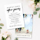 Anúncio de casamento simples ou moderno ou convite para festa de celebração de casamento. A frente apresenta "Festa Feliz para Sempre" em uma mistura de tipografia simples e um script contemporâneo, e você pode personalizar sua mensagem e convite com mais detalhes e adicionar seus nomes em um script semelhante a uma assinatura. O verso apresenta sua foto de casamento, seus primeiros nomes e data de casamento.