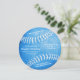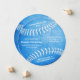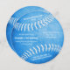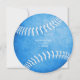 Este convite de festa de aniversário temático de softball apresenta a imagem estilizada de uma bola de softball que foi recolorada azul com costuras brancas, sobre a qual você pode personalizar os detalhes da festa - por katz_d_zynes
