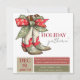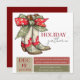 Botas e arcos bonitos neste convite de festas de feriado totalmente personalizável. Em azeitona mudada, vermelho de férias e creme.