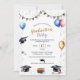 Celebre o formando especial em estilo! Os objetos de aquarela que simbolizam a graduação são exibidos neste convite de festa de formatura divertida. Uma faixa de ouro e preto soletra "parabéns formando" mas você pode mudar isso para o que quiser. Bonés de formatura, diplomas e balões decoram o fundo e os lados do convite com um sutil fundo de confete para adicionar à celebração. O inverso é um tabuleiro de tartara e um padrão de confete para combinar. Disponível com produtos correspondentes.