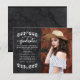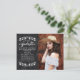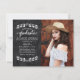 Este maravilhoso e elegante anúncio de graduação mostra uma foto do formando na frente do cartão, com uma bonito letra de escrita de caligrafia branca e uma elegante borda branca de folheto em um fundo de mármore preto. A frente e o verso do cartão tem um padrão sutil de mármore preto. Adicione sua foto a este design de na moda, classe e graduação simples! Projetado para você pelo Blackberry Boulevard.