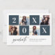 Anúncio de graduação e convite de festas de multifotografia geométrica. Apresentando tipografia em negrito e texto de script de tendência. A cor de fundo azul geométrica do marinho pode ser alterada.