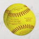 Este convite de aniversário desportivo com tema de softball apresenta a imagem realista de um softball que foi colorido amarelo brilhante com pontos vermelhos, sobre o qual você pode personalizar os detalhes da sua festa - por katz_d_zynes