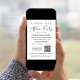 Anúncio de casamento discreto e sofisticado ou de fuga romântica e convite para recepção de casamento ou festa de celebração. A frente apresenta "Festa Feliz para Sempre" em uma mistura de tipografia simples e uma escrita moderna. Personalize sua mensagem e convite com mais detalhes, insira o URL do site do seu casamento para criar um código QR para que os convidados leiam e respondam online e acessem outros detalhes, e adicione seus nomes em uma escrita com estilo de assinatura. O verso apresenta sua foto de casamento favorita, seus primeiros nomes e data do casamento.