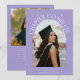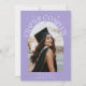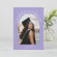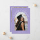 Cartão de foto de anúncio de formatura moderno e caprichoso com uma foto emoldurada em arco na frente e 1 no verso. O texto diz "Capítulo Completo" com estrelas desenhadas à mão. Adicione o nome do graduado, informações e mensagem para personalizar este cartão. Fundo lilás.