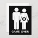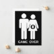 Os símbolos universais de homem e mulher, de mãos dadas, mulher mostrando um útero/feto, e com a legenda "Fim de Jogo". Design preto e branco, em camisetas, moletons, cartões, presentes.