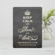 Mantenha O Texto Da Tipografia Calma Em Uma Imagem De Tampão Preto De Imagem De Vintage Retroativa Com Script Curly E Elegante, Engraçado Salvar O Cartão De Anúncio De Data. Você também pode personalizar sua própria foto, mensagem pessoal e endereço de retorno na parte traseira do cartão. Todo texto, script de caligrafia e plano de fundo podem ser alterados para qualquer cor de sua escolha na página personalizadora do produto. Você também pode aplicar filtros diferentes para suas fotos. Concebido por gordura*fa*estanho. Fácil de personalizar com seu próprio texto, foto ou imagem. Para pedidos personalizados, entre em contato direto com o . Aplicam-se taxas personalizadas. www.zazzle.com/fat_fa_tin www.zazzle.com/color_therapy www.zazzle.com/fatfatin_blue_knot www.zazzle.com/fatfatin_red_knot www.zazzle.com/fatfatin_mini_me www.zazzle.com/fatfatin_design www.zazzle.com/fatfatin_ink