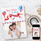 Personalize este anúncio de gravidez com temas brancos e azuis vermelhos com sua própria foto e mensagem. O design apresenta a redação "Red White & Blue a Firecracker is due" com estrelas e faixas e balões de ar quente. O modelo está configurado para que você adicione sua foto à frente da placa e sua mensagem personalizada à parte traseira. Um tema americano bonito e perfeito para os anúncios de gravidez de 4 de julho.