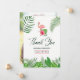 Pintura em aquarela de folhagem tropical cartões de agradecimento de foto de formatura Luau com tipografia de letra elegante personalizável para os detalhes do seu evento.