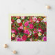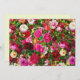 Jardim colorido com arbustos de rosa e outras flores estão em floração de cheio.