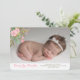Um conjunto delicado de flores cor-de-rosa enfeita o canto deste doce, foto, anúncio do nascimento. Apenas adicione a foto do seu pouco amor para fazer-lhe seu. (<a href="https://www.freepik.com/free-photos-vectors/people">Pessoas da foto criada pelo yanalya - www.freepik.com</a>). (<a href="https://www.freepik.com/free-photos-vectors/frame">Vetor do quadro criado por BiZkettE1 - www.freepik.com</a>). <br/><br/>O cartão é fácil de personalizar com seus fraseio, opções da pia batismal, do cor da pia batismal, as de papel da forma e escolha de seis tipos de papel<br/><br/>Não exatamente que você está procurando? Todos nossos produtos podem ser projetados para encontrar suas necessidades em nenhuma sobretaxa<br/><br/>Contacte-nos simplesmente em askcottonlamb@gmail.com. <br/><br/>Produtos de coordenação disponíveis: Apenas pergunte-nos!"
