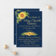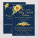 An elegant announcement of a bereavement card. Use the card to advise family and friends of a love ones death and the funeral arrangements. Rustic yellow floral watercolor sunflowers on a dark blue background with cream text. Add any extra details on the reverse and add your own details as needed . Sorry for your loss.