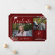 Simples e elegante anúncio de formatura em duas fotos. Fundo colorido de vinho com fonte de script de estilo e rosas de aquarela. Fundo listrado vermelho. Modelo fácil de usar. Basta mudar o texto e carregar suas próprias fotos de graduação. Elemento monograma em frente ao anúncio.