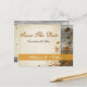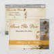 Este cartão postal de salva data floral de outono rústico, em cores de outono tardio em dourado e marrom, tem três tipos diferentes de flores e videiras, sobre um fundo de tábuas de madeira cinza desgastada e papel pergaminho marfim FALSO que combina com o convite de casamento mostrado abaixo. Seria perfeito para um casal que deseja ter um casamento rústico country casual ou informal. Todo o texto é personalizável. ****POR FAVOR, OBSERVE que se você alterar as fontes ou o tamanho da fonte, parte do design e/ou texto pode ser cortado. Tudo será impresso como você vê no seu monitor. Eu não verei seu cartão, e a Zazzle NÃO irá corrigir nada (erros de digitação, desalinhamento, etc.). O texto é totalmente personalizável. Se precisar de ajuda com este cartão, por favor me envie um e-mail ANTES de fazer o seu pedido. Se você precisar