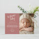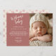 Bonito, simples anúncio de nascimento de uma menina floral criado usando flores silvestres rosa pintadas à mão. O texto pode ser facilmente editado ou excluído para uma nota manuscrita. Arte original de Leslie Larson.