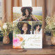 Apresentando nosso Anúncio de Graduação Floral Selvagem Laranja do Jardim Laranja Selvagem! Este vibrante convite mostra ilustrações de cor d'água floral pintadas manualmente em tons de laranja, rosa e verde, perfeitamente complementadas por um roteiro elegante de pincel. Capture seu marco com três fotos com flores bonito pintadas manualmente e sotaques de dourado, acrescentando um toque de brilho ao seu anúncio especial. Vamos comemora sua conquista em estilo! 🌺 🎓