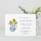 Flores de água pintadas, elegantes e frescas, em um Chá de panela de vaso azul e branco, perfeito para o verão, outono, chás de jardim ao ar livre. Personalizar clicando nas caixas "Editar este modelo de design" no lado direito do item ou clique no botão azul "Personalizar" para organizar o texto, alterar as fontes e as cores