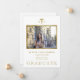 Modelo de cartão de anúncio de formatura da escola de enfermagem elegante moderna, branco e dourado, com sua foto e texto personalizados.