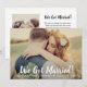 Anuncie seu casamento com este anúncio de casamento com foto de script de pincel ousado com "Nós nos Casamos!" em letras brancas com um acento de coração sobre sua foto favorita. Nomes e data do casamento são exibidos de forma destacada abaixo. O verso inclui uma segunda foto e uma carta personalizável que compartilha a história da sua cerimônia privada. Substitua ambas as fotos e edite todo o texto para criar um item precioso que seus entes queridos irão guardar.