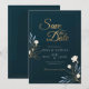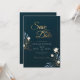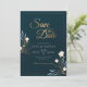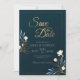 Um anúncio formal e elegante de salve a data com letras douradas e flores brancas contra um fundo escuro. O cartão é fácil de personalizar com sua redação, fonte e cor da fonte. Não é exatamente o que você está procurando? Todos os nossos produtos podem ser personalizados para atender às suas necessidades sem custo adicional. Basta entrar em contato conosco em askpixieprints@aol.com. Produtos coordenados disponíveis a seu pedido.