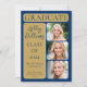 Design de anúncio de graduação de fotos clássico e elegante estilo minimalista azul escuro e tom dourado. Todas as cores e texto são editáveis.
