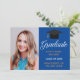 Um anúncio clássico personalizado de graduação de fotografia em lindo azul real e ouro para um segundo grau, faculdade ou universidade da classe de 2025. Personalize com seu nome de escola e sua classe de graduação sob a adorável caligrafia para um cartão com fotos de formando elegante e personalizado com seu retrato de mais velho.