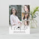 Anuncie o seu segundo grau ou formando universitário com este cartão de anúncio fotográfico moderno, com um título de FORMANDO de tipografia gravado à mão, acentuado com um boné de formatura na sua escolha de cores e 5 fotos (4 na frente e 1 na parte traseira). O verso oferece um campo de texto para informações sobre as realizações, atividades e planos futuros do seu formando. ALTERAÇÕES: Altere as cores do texto e/ou do gráfico em EDIT. ASSISTÊNCIA: para obter ajuda com a modificação/personalização do design, transferir o design para outro produto ou, se você quiser coordenar itens, entre em contato com o designer ANTES DE ENCOMENDAR através da guia MENSAGEM de Bate-papo Zazzle ou envie um email para makeitaboutyoustore@gmail.com.