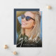 O anúncio simples e moderno da graduação de fotos apresenta "formando" na parte inferior em um roteiro casual escrito à mão, com o nome do formando e a escola, e o ano de graduação abaixo. Ideal para segundo grau, faculdade ou graduação avançada. Adicione uma mensagem pessoal ao verso, juntamente com uma foto adicional.