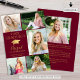Anuncie seu segundo grau ou formando universitário com este anúncio elegante de burgundy ou maron e ouro (ou outra cor de fundo) com 6 fotos (5 na frente e 1 na parte traseira), um elegante boné de formatura ou placa-mãe de folha de ouro metálico falso elegante, o título FORMANDO ANO com seu nome de formando em um roteiro e manuscrito e nome da escola. O verso foi projetado para incluir informações sobre as realizações, atividades e planos futuros de seu formando, conforme desejado. ASSISTÊNCIA: Para obter ajuda sobre modificação/personalização do design, alteração de cor, transferência do design para outro produto ou se você quiser coordenar itens, entre em contato com o designer ANTES DE PEDIR por meio do Zazzle Chat ou makeitaboutyoustore@gmail.com.