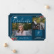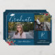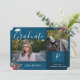 Simples e elegante anúncio de formatura em duas fotos. Fonte de script de estilo azul com rosas de aquarela. Fundo listrado azul. Modelo fácil de usar. Basta mudar o texto e carregar suas próprias fotos de graduação. Elemento monograma em frente ao anúncio.