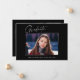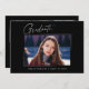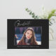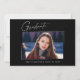 Cartões de anúncio de graduação "4 Fotografias" limpos, modernos e elegantes, com design de elementos do texto moderno com um único script de tinta de caligrafia. As fotos do formando são acentuadas com uma delicada e minimalista barreira de gradiente. A parte traseira do cartão oferece espaços de texto personalizados para informações sobre sua graduação. Preto e branco ou personalize facilmente o fundo para corresponder à cor primária da sua escola ou a qualquer cor da sua escolha. Perfeito para mais velho de segundos graus, universitários e universitários.