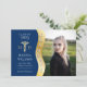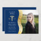 Comemore o seu formando de pós-graduação favorito com este design de fotografia "Formando" azul escuro e de tom de ouro. A modelo apresenta uma visão ondulada do lado esquerdo com a palavra "Formando" no fundo da onda dourada acompanhada de um recorte de tom dourado com "M" e "D" de ouro plano, para o ano de classe esquerda e formando, nome e escola de branco. Design por Holiday Hearts Designs (direitos reservados) com o crédito de foto marcador para Mike Austin via Unsplash.