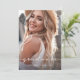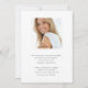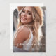 Este anúncio de graduação da classe simples e na moda de 2023 diz "formando" em delicado e elegante roteiro moderno com sua foto pessoal favorita na frente do cartão. Mais informações sobre o formando podem ir para o fundo, com um design preto e branco minimalista.