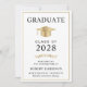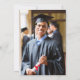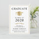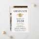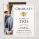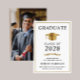 Anúncio de formandos elegante com boné de formando de ouro e tipografia simples e moderna para o nome do formando, ano de aula, faculdade ou universidade, grau e grande ou honras. A foto do formando preenche a parte traseira da placa.