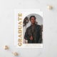 Anúncio de graduação de na moda e tendência apresentando a foto do formando na frente com um quadro de fotos de arco de offset. O "Formando" é apresentado a negrito com a inscrição retrorreflectora em ouro sobre fundo branco. Personalize a frente do anúncio de graduação em fotos de arco adicionando o nome do formando, a escola e o ano de graduação. O cartão se reverte para exibir 3 fotos adicionais com espaço para texto personalizado, como futuros planos de faculdade, planos de carreira, detalhes de festa de formatura, etc. O anúncio da graduação em ouro é perfeito para formandos segundos graus e universitários.