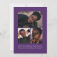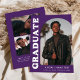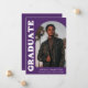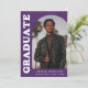 Anúncio de graduação de na moda e tendência apresentando a foto do formando na frente com um quadro de fotos de arco de offset. O "Formando" é apresentado em caracteres branco a negrito, com a inscrição retrorreflectora sobre um fundo roxo. Personalize a frente do anúncio de graduação em fotos de arco adicionando o nome do formando, a escola e o ano de graduação. O cartão se reverte para exibir 3 fotos adicionais com espaço para texto personalizado, como futuros planos de faculdade, planos de carreira, detalhes de festa de formatura, etc. O anúncio de formatura roxa é perfeito para formandos de segundo grau e de faculdade.