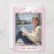 Placa de anúncio de formando de parabéns exclusiva e de tendência com um plano de fundo clássico de gradiente ombre, cor branca e cor branca, cor-de-rosa pincelada. Com espaço para personalizar ou personalizar com uma foto, o nome do formando, ano de graduação, segundo grau e futuro nome da faculdade ou universidade. Deixe a família, amigos e vizinhos saberem que há um formando feliz pronto para conquistar o mundo, e convide todos a virem celebrar o feliz evento com vocês!